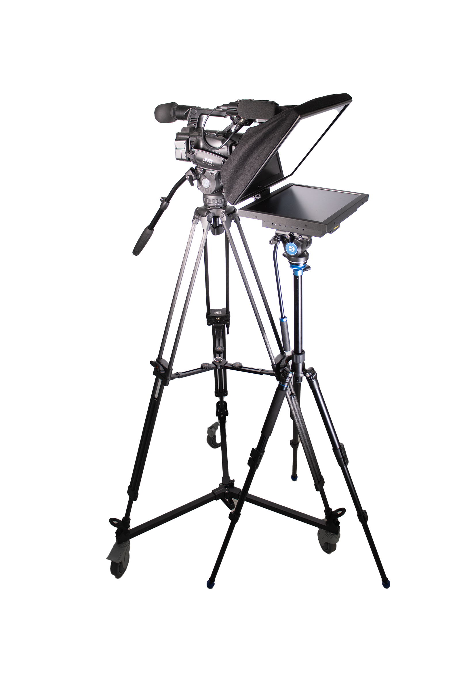 Lightweight, stable, and mobile: combines a 15″ teleprompter with a professional tripod and dolly, allowing for smooth camera movements and fluid presentations. Ideal for creators, presenters, and production companies seeking precision and mobility in every shot.