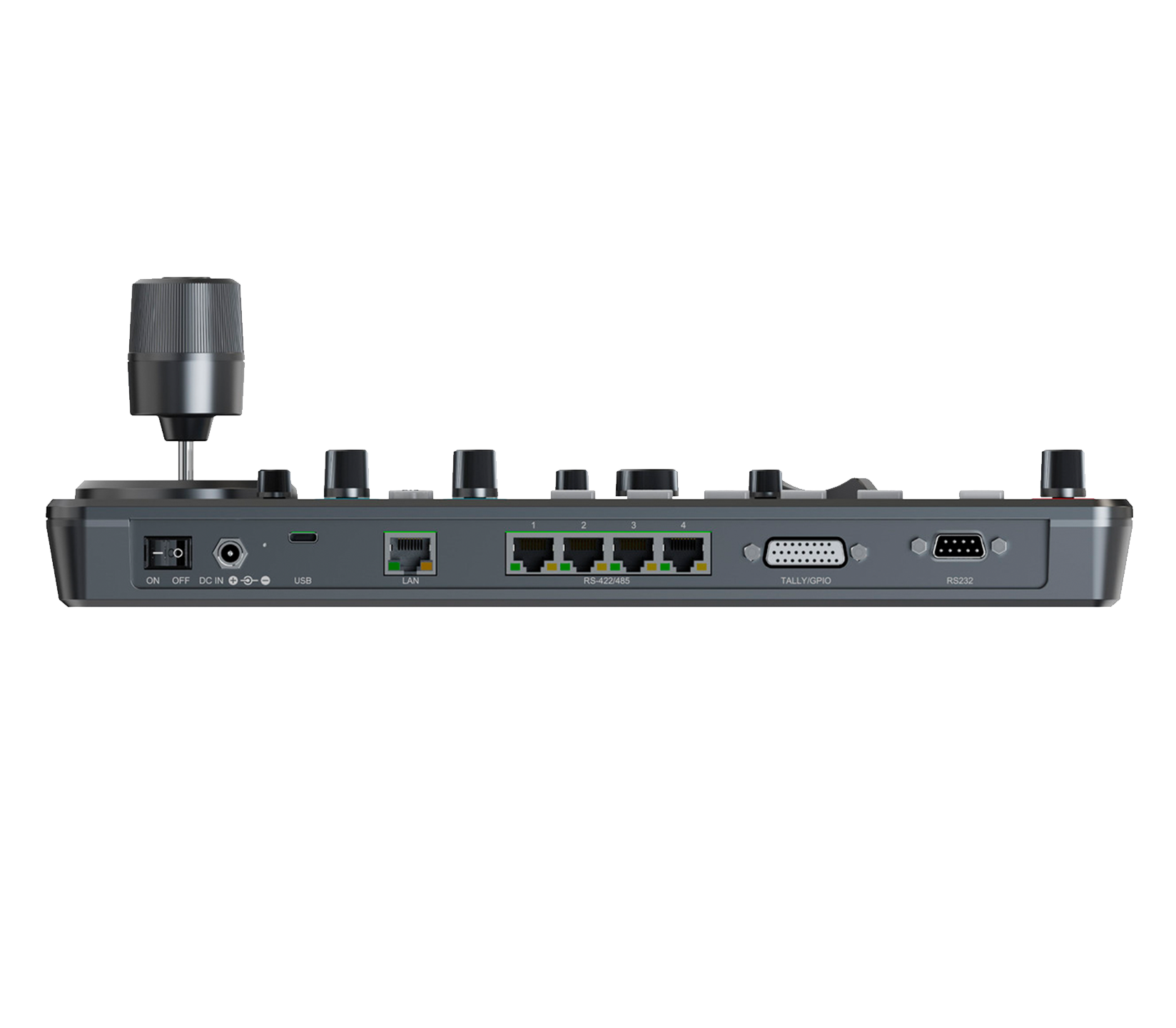 - Joystick de 3 ejes: Control tridimensional para operaciones de paneo, inclinación y zoom, con respuesta precisa para movimientos suaves.